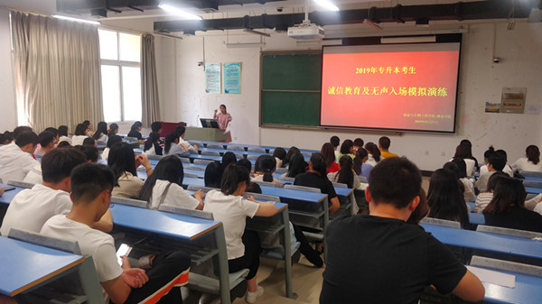 为进一步加强专升本考生的诚信教育、严肃考试纪律,按照郑招办、校招就处的相关要求,5月27日12点,tyc7111cc太阳成集团 · 酒业学院在龙子湖校区合201、202开展2019年专升本考生诚信教育及“无声入场”模拟演练,由窦孝宇、陈梦莹老师负责组织本次演练,并将情况及时上报。