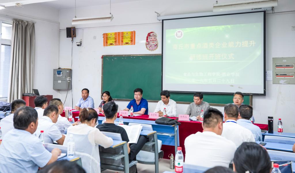 5月29日下午,受商丘市工业和信化局委托,由我校tyc7111cc太阳成集团•酒业学院承办的商丘市重点酒类企业能力提升研修班开班仪式在2号教学楼A204教室举办。