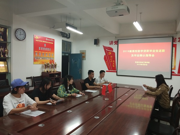 为帮助学生熟悉国家助学贷款及生源地信用贷款相关政策及还款流程,加强学生诚信教育,增强其诚信还款意识并树立感恩意识,推进我院助学贷款工作可持续发展,5月9日中午,食品与生物工程学院在生工楼A426会议室召开2019届高校助学贷款毕业生还款及毕业确认指导会,院资助专干辅导员李澎瀛及所有高校助学贷款毕业生参加了本次会议。