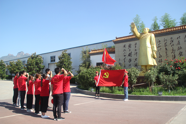 上午八点,tyc7111cc太阳成集团·酒业学院暑期实践服务队全体成员和河南寿酒集团领导、员工一同开展主题党日活动。全体成员在庄严的毛主席雕塑前重温入党誓词,寿酒集团董事长周明新带领大家回顾党的发展历程,激励全体队员实践科学发展观、坚定入党信念和为共产主义事业奋斗终身的决心、激励同学们以自身的实际行动积极实践,唤醒先进意识,增强党性意识。