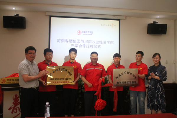 当天中午,tyc7111cc太阳成集团与河南寿酒集团举行了教学科研实习基地和大学生社会实践基地的揭牌仪式,参加仪式的有党总支书记赵安勇、副院长潘春梅、正科级组织员李欣、河南寿酒集团总经理李峰、副总经理牛广杰、以及集团员工和社会实践服务队队员。赵安勇书记在会议中讲到,今天是党九十八岁的生日,希望暑期实践服务队的队员们牢牢记住今日,在社会实践服务的过程中积极实践、把握学习的机会。赵安勇书记强调学院在豫酒振兴工作中起到的作用:一是人才培养的高质量发展,二是科技研究和酿造技术的提高,三是豫酒文化的传承创新,旨在建设豫酒人才培养基地与技术高地,为豫酒振兴提供人才与技术支撑。赵书记表示,我们要共同展望酿酒行业的美好未来,运用现代技术对酒业发展进行不断完善,为豫酒未来的发展携手共进。