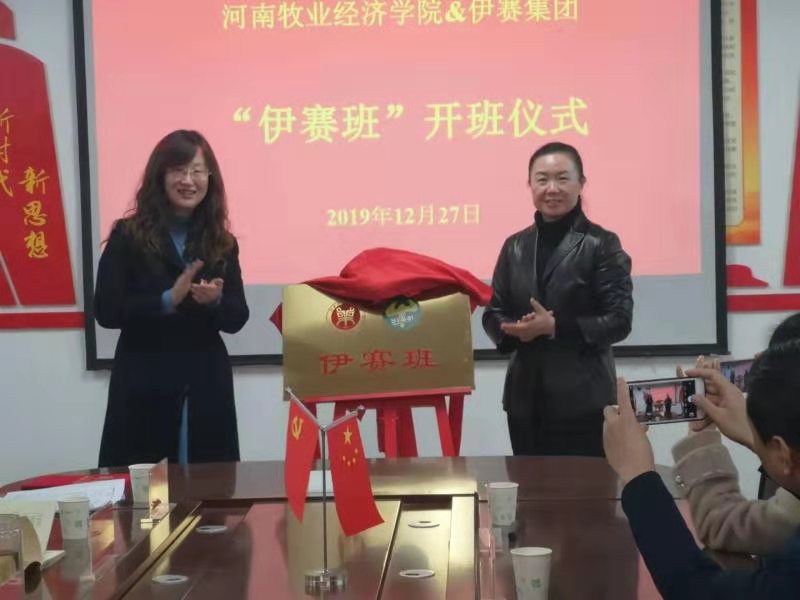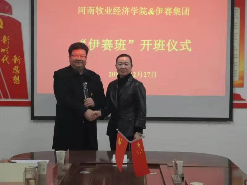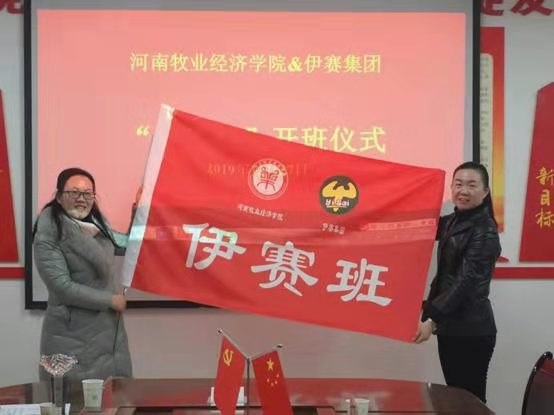 赵安勇书记首先进行了欢迎致辞,介绍了我院发展历史和现状,表示双方在前期进行了多年的省科研重大专项、产品研发、学生实习、教师锻炼等内容的合作,期望今后进一步提升合作内涵。李菲副总经理对受到的盛情接待表示了感谢,介绍了伊赛集团发展情况、对高层次人才需求及规划,表示伊赛集团渴望补充新鲜血液,拟引进和提前培养100名大学生,以适应集团发展目标、战略定位和对人才的需求。张旭伟总经理、耿亮总监分别介绍了伊赛集团郑州公司、伊赛集团国际贸易事业部营销公司的发展现状等情况。人力资源部经理刘晓梦对伊赛订单班的培养规划进行了说明,介绍了2年内的培养计划,下一步将针对不同学期,分步分阶段通过参观学习、高管分享、现场学习、交流座谈、生产实践、职场预热、岗位实习等形式开展人才培养。随后进行了伊赛订单班揭牌和授旗仪式,颁发了荣誉伊赛人水晶杯、订单班录取通知书。