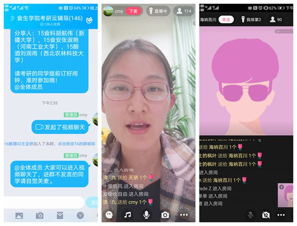 三位优秀的毕业生针对食品科学与工程、食品质量与安全、酿酒工程三个不同专业复试的重点,从英语口语及翻译、专业课笔试、面试提问和调剂策略等方面对考研复试和调剂过程中容易出现的问题进行了点拨,并在线回答了同学们提出的各类相关问题。最后,陈老师总结发言,她代表学院感谢毕业生们对学院工作的大力支持,对学弟学妹们的指导和帮助,鼓励2020届考研学生以他们为榜样,认真备考,继承和弘扬优良的院风学风。