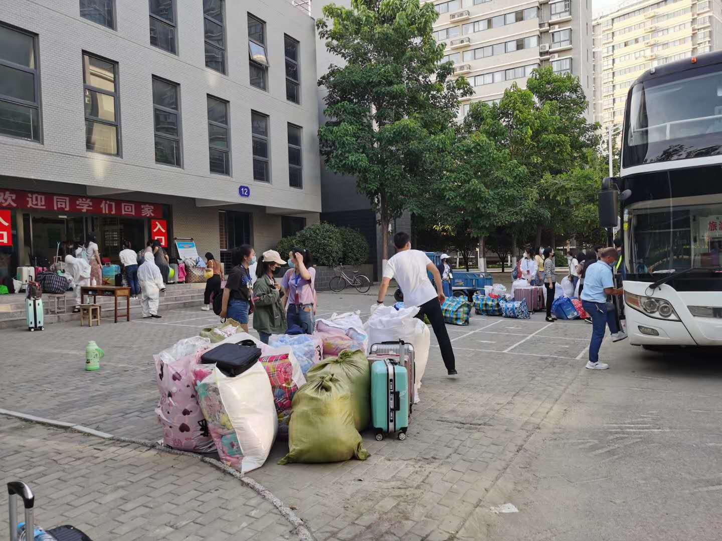 为避免人员聚集,确保有效分流,学院学生工作队伍一早就来到了接待现场,布置安排复学登记、材料回收、防疫物资发放、路线指引等工作,确保复学流程顺畅。学生入校后按照学院统一安排,各项程序有条不紊地进行,在信息登记的空隙,辅导员老师们还与返校学生耐心沟通,询问学生返校情况,叮嘱学生要做好个人防护。下午,学院返校学生集中,烈日炎炎,我院师生不辞辛苦,坚守岗位,在办理好复学手续的同时,还积极帮助同学们搬运行李,发送防暑物资,到宿舍慰问学生,送去盛夏的一股清凉。
