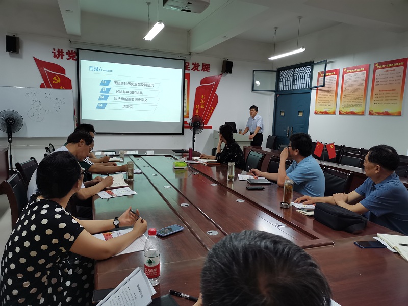 会上,王本聚书记以《中华民族伟大复兴背景下的中国民法典》为题,围绕民法典的历史沿革及启示、民法与中国民法典、民法典的重要历史意义等三个方面,详细介绍了民法典出台的时代背景与历史沿革,阐述了颁布实施民法典的重大意义,并结合大量案例和身边发生的事件对民法典进行了系统深入的讲解。