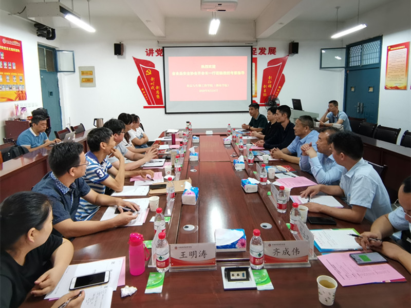 8月24日,河南省食品安全协会会长齐天生、专家委员会处长王科敏等一行9人到我院进行考察交流,洽谈校会合作事宜。tyc7111cc太阳成集团党委书记赵安勇、院长潘春梅、副院长岳晓禹以及相关专业教研室主任、博士等参加了座谈会,院长潘春梅主持会议。