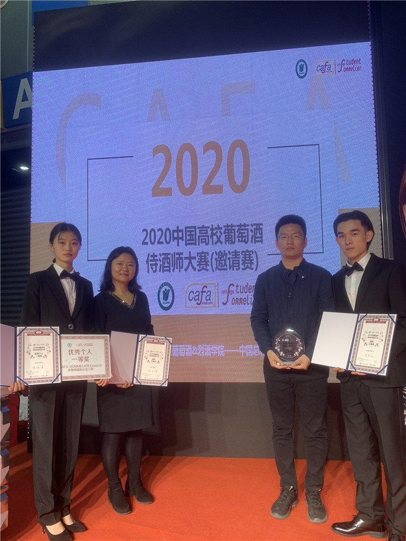 11月15日,2020中国高校葡萄酒侍酒师大赛决赛在浙江义乌国际博览中心隆重举行,来自15个省的20多所高校的参赛团队入围最终决赛。近100多位国际知名评委、精英侍酒师、各大葡萄酒行业协会、餐饮机构代表、酒商代表莅临现场,我院陈黄曌老师带队参赛,荣获团体第三名和个人一等奖的好成绩。