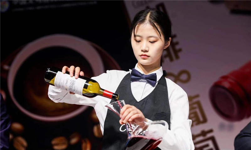 本届比赛首次采用团队形式进行比拼,每个学校选派2名参赛选手,通过分工配合共同完成比赛。决赛共分为三部分:第一轮为笔试;第二轮为新酒开瓶和分杯实操;第三轮为餐酒搭配和老酒侍服实操。前两轮排名前5的学校进入第三轮争冠赛。在15日下午的笔试和16日上午第二轮实操竞技中,我校19酿酒专升本班的郭思远和19酿酒01班的张冰倩临场发挥出色,前两轮总分排名第3,顺利进入决赛。在紧张激烈的终极决赛中,两名选手不畏强敌,很好的展示了我校学子的精神风貌和专业技能,完美地完成了所有侍服操作,最终荣获团体第三名和个人一等奖。