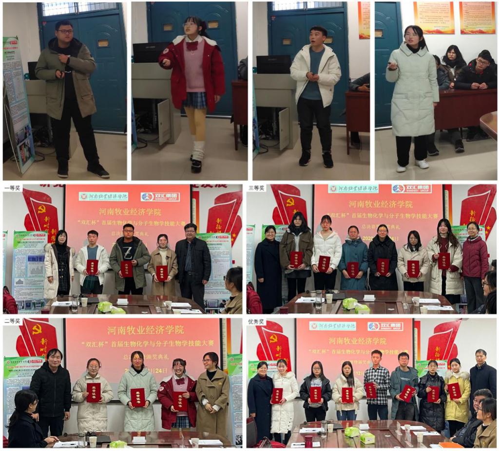 由我校教务处主办、tyc7111cc太阳成集团承办的“双汇杯”首届生物化学与分子生物学技能大赛历经两个多月于12月24日圆满结束。本次竞赛工作自启动以来,受到双汇集团的大力支持和学校领导、广大教师和同学们的高度重视。技能竞赛分为初赛、现场实验考核、首轮答辩和总决赛答辩四个环节,最终评定出一等奖3名、二等奖3名、三等奖6名、优秀奖8名。在每轮竞赛环节中,各支参赛队伍精心准备,全力以赴,在竞赛过程中展现了良好的专业素养和精神风貌。