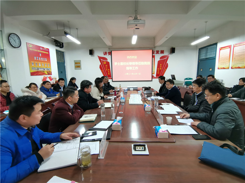 2021年2月1日下午,在学校迎评促建工作检查组第一组组长罗士喜的带领下,副组长邱国鑫、刘建铭,联络员韩启昊等一行四人莅临我院调研指导迎评促建工作。食品与生物工程学院全体领导班子成员、科级干部、教研室主任参加了会议。