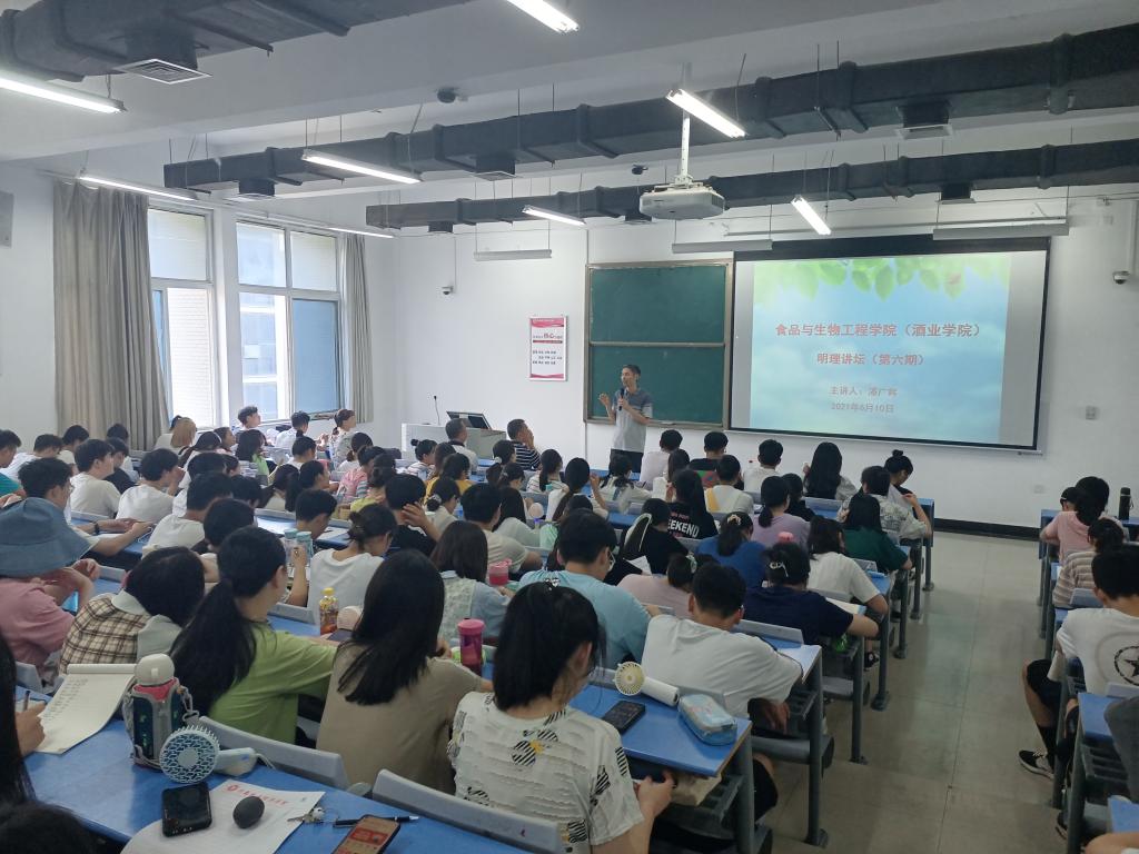 为进一步提升人才培养质量,营造锐意进取的学术氛围,提高学生的综合素质和就业竞争力。6月10日下午,食品与生物工程学院明理讲坛第六期顺利开讲。学院邀郑州双汇食品有限公司总经理潘广辉在一号教学楼合402作“成长经历与大学生职业生涯规划”的报告。副院长岳晓禹、辅导员及150余名学生参加。报告会由副院长岳晓禹主持。