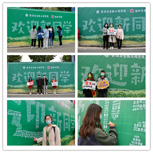 校党委书记穆瑞杰、 校党委副书记李俊杰、校党委书记李波、校纪委书记李中华、副校长杨志清及相关部门领导先后到我院迎新现场指导工作,与参与迎新的师生亲切交流。学院用新生姓名进行组合拼成“欢迎新同学”的照片墙,引来许多新生驻足围观,寻找自己的名字,合影留念,为报到新生留下大学生活的第一张笑脸。学院各支部师生党员,冲锋在前,为报到提供细致周到的迎新服务,志愿者和工作人员分工明确,佩戴学院定制的“食生欢迎你”专属迎新口罩,热情大方,耐心指引。整个现场高效、热烈、有序。