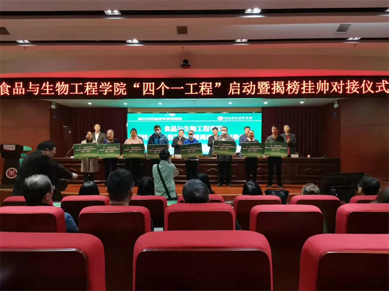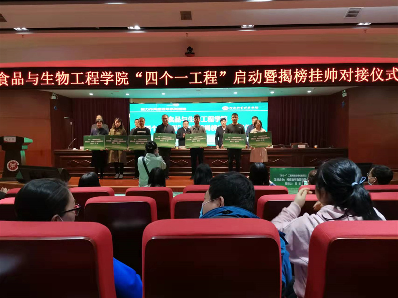 “四个一工程”即一人、一企、一项目、一成果,是我院落实党中央国务院乡村振兴战略和省委第十一届党代会决策部署,实施我校“百名专家助百企”活动之一,也是学院提出的2022年重要战略目标和发展策略,此次揭榜挂帅对接项目,是“四个一工程”中的重要环节,针对原阳县产业集聚区26个食品生产企业提出的50个技术需求和技术瓶颈,我院26名专家、博士进行揭榜对接,为原阳食品生产企业发展提供智力支撑。据悉,一个高校的二级学院服务一个地方的产业发展,在国内尚属首次。