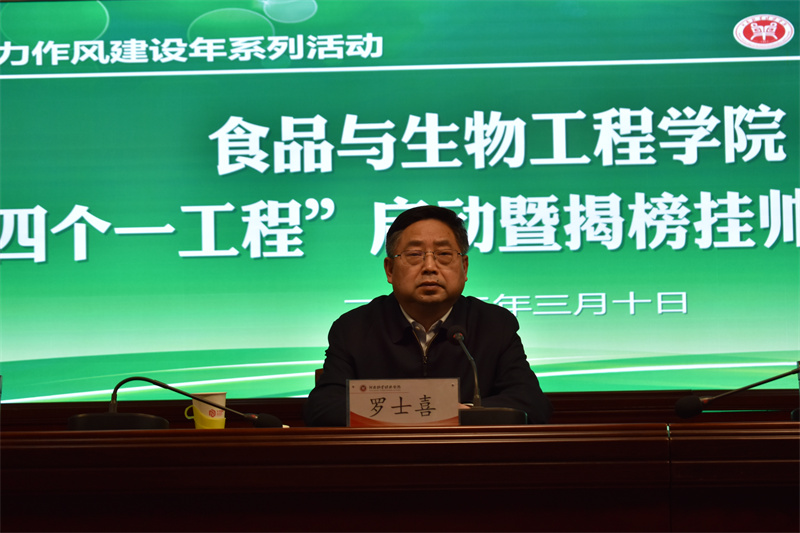 罗士喜提出四点要求:一是提高政治站位,全力做好“四个一”工程,努力攻克企业发展中存在的技术难题;二是在破五唯的大背景下,教育评价要回归教育的本质、教育的初心,积极构建符合学术发展规律与人才成长规律的评价体系,学校将在科研评价、职称评聘上有更多改革,增加横向项目的认可度,要把论文写在大地上,把项目做在企业里;三是要心怀责任,勇挑重担。各位揭榜人承担着学校名誉、学院发展、个人成长的责任,要解放思想,积极探索,不断实现自我人身价值;四是发扬团队精神,厚植家国情怀。团队协作是突破技术难题和发展瓶颈的有效途径,要在保障食品安全的前提下,努力实现社会效益和经济效益的完美结合。