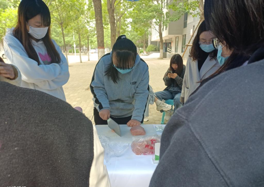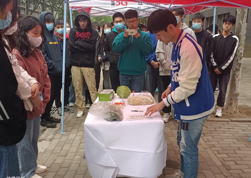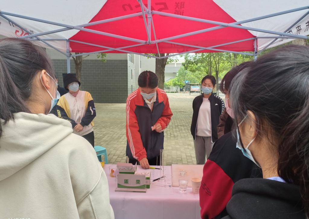 本次科普活动旨在宣传开科普食品安全知识及快速检测食品安全的方式防范,同时培养食品安全专业学生科普知识及实践操作能力。活动现场,食品安全专业教研室主任陈威风分别对肉类、乳品类、果蔬类、豆制品类食品的安全检测向同学们进行讲解和示范。从食品安全的重要性、各类食品的安全威胁到检测试剂的使用、观测,两位老师详细的向同学们进行展示和讲解。之后,现场同学们分组操作,相互配合进行检测,并对来往的同学进行食品安全知识讲解,活动现场同学们热情高涨,纷纷主动实践。一方面强化了同学们食品安全检测的实践操作,另一方面切实推进了食品安全知识的科普教育。