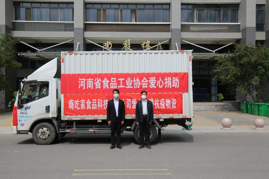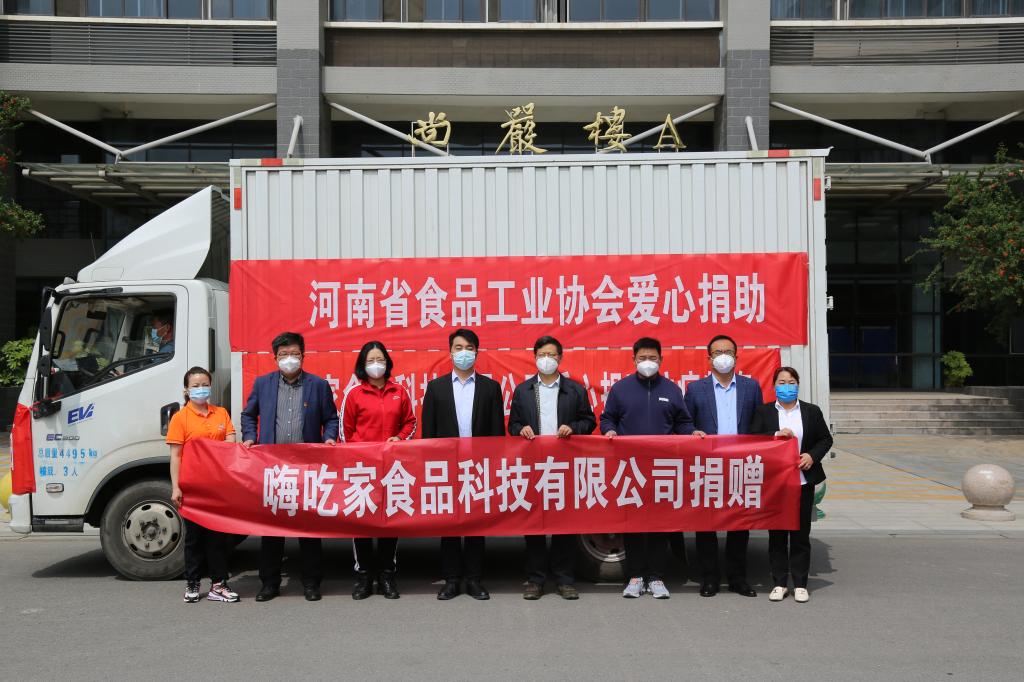 危难之时见真情,我校疫情防控的关键时刻,在河南省食品工业协会第四届副会长、秘书长陈振杰的协调下,嗨吃家食品科技有限公司主动伸出援手,向我校捐赠1500件海吃家酸辣粉丝。