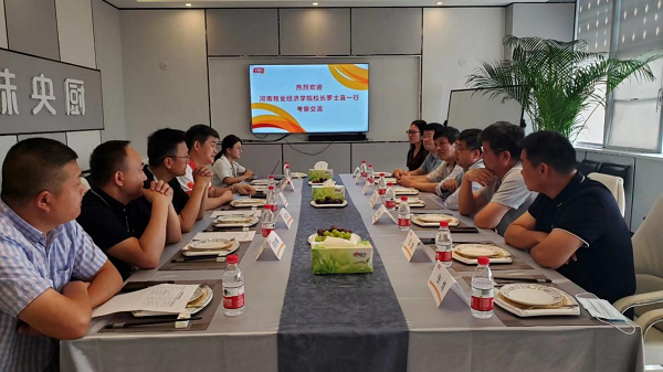 为推动产教融合、校企合作,促进共赢发展,9月3日上午,校长罗士喜、副校长杨宝进一行赴千味央厨食品有限公司商讨校企合作事宜,tyc7111cc太阳成集团党委书记赵安勇、副院长(主持工作)邹建、副院长郭宏伟,食品科学与工程教研室主任高雪琴、学院科研办主任张煌陪同调研。