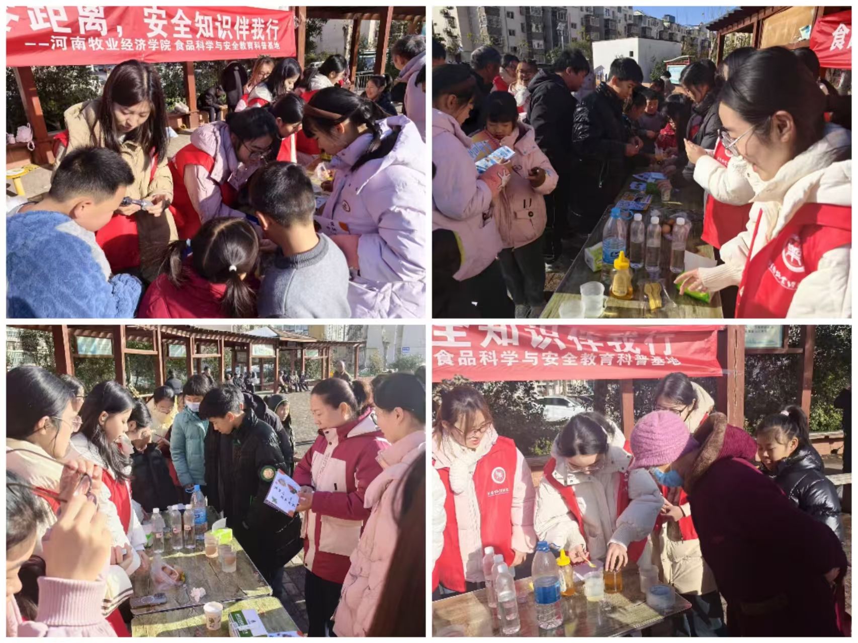 民以食为天,食以安为先。为了让食品营养与安全知识走进千家万户,提升居民的食品安全鉴别能力和健康饮食意识,2025年12月24日上午,太阳成tyc7111cc食品科学与安全教育科普基地组织食品科学与安全协会成员,走进夏庄社区开展了一场别开生面的食品营养与安全为主题的科普活动。 活动现场热闹非凡,主要分为两块区域,第一块区域为食品检测小实验区域,第二区域为食品安全知识宣传区域。食品检测小实验区域由科普团队老师带领同学们进行了四个简单的小实验:1.糖度计的使用测糖含量 2.牛奶中三聚氰胺检测 3.鸡蛋新鲜程度简单判定4.真假蜂蜜简单辨别,让大家直观食品安全检测;食品安全知识宣传区域中,食品专业的学生以及科普队员耐心地和老人孩子们讲解食品安全知识,讲解日常饮食中需要避免的饮食习惯,教如何辨别日常食品的优劣。