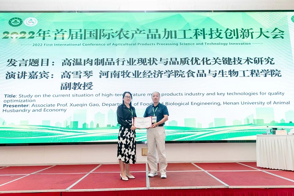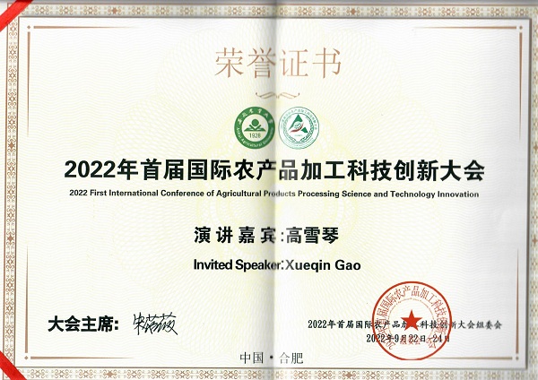 2022年9月22-24日,由安徽农业大学主办的2022首届国际农产品加工科技创新大会在安徽合肥召开,来自全国各地从事农产品加工行业的200余位参会代表汇聚一堂,共同探讨农产品加工技术创新和产业发展。我院高雪琴博士应邀参加大会并在大会上做专题报告。