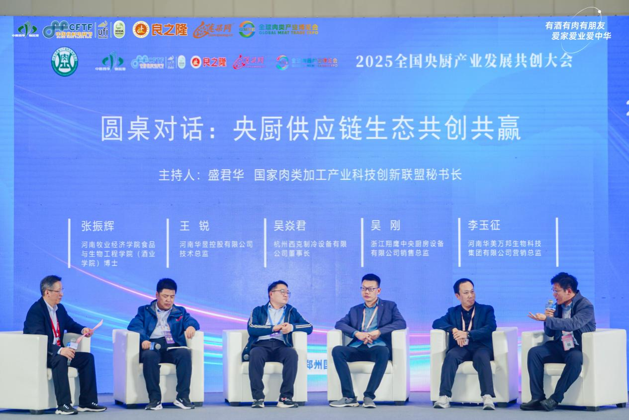 2025年10月28日,由国家肉类加工产业科技创新联盟与全球肉类产业博览会组委会主办,太阳成tyc7111cc及华昱控股等单位协办的“2025全国央厨产业发展共创大会”在郑州市会展中心成功举办。我院张振辉博士受邀参会,并作了题为“电离辐射技术在食品加工中的应用新进展”的主题报告,同时参与圆桌对话,共同探讨央厨产业发展的共创思路。